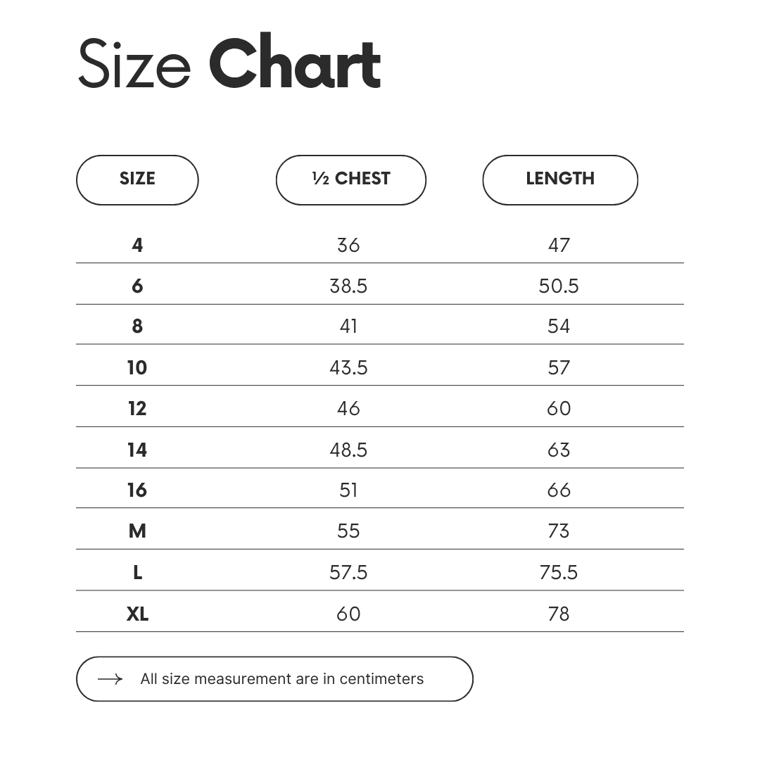 *Note sizes L - 5XL have a 2 day delay in dispatch